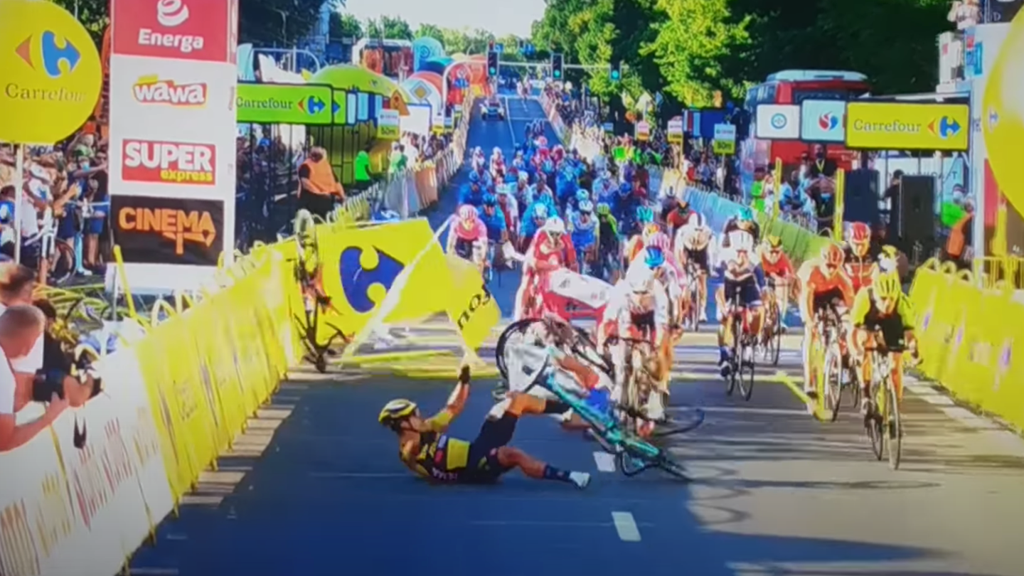 Road cycling is rarely ever considered “gnarly,” but holy sh*t did a finish sprint at the Tour of Poland turn that way earlier this week. It’s what folks in the cycling world are calling one of the worst crashes ever, with a whole pack of riders going down after a line miscalculation, pushing Fabio Jakobsen into a barrier 10 feet from the finish. Even Lance Armstrong tweeted about, saying: “Been around this game a long time and not sure I’ve seen a crash that horrific.”