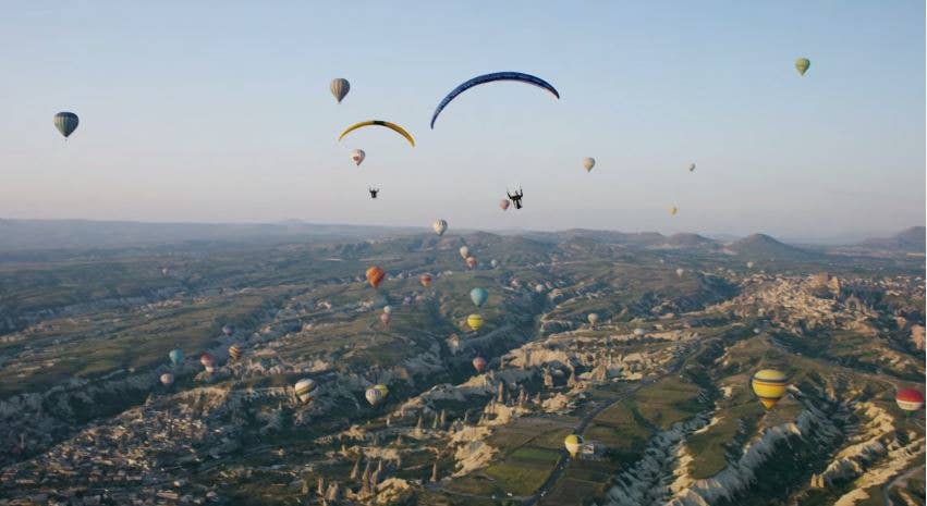 So paragliding is pretty neat to begin with, but what happens when three guys jump out of a hot air balloon and do 126 synchronized infinity tumbles? Well, it is quite the sight, especially when they are surrounded by a multitude of balloons in a beautiful location.