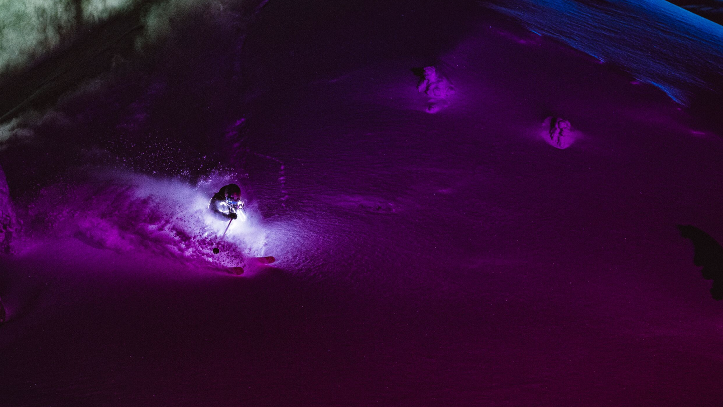 Michelle: Yeah, totally. So there was a lot of high-speed, Oh here we go. Like we're going into the darkness. The lights were only on the top part of the mountain, but it was also this super surreal feeling of shredding down. And then there were a couple of times we would all drop in together and you just see this lightning bolt screaming past you and you're like, What? This is so sick. So it was all just otherworldly and like such a visual show. It's much like the live shows, you know?