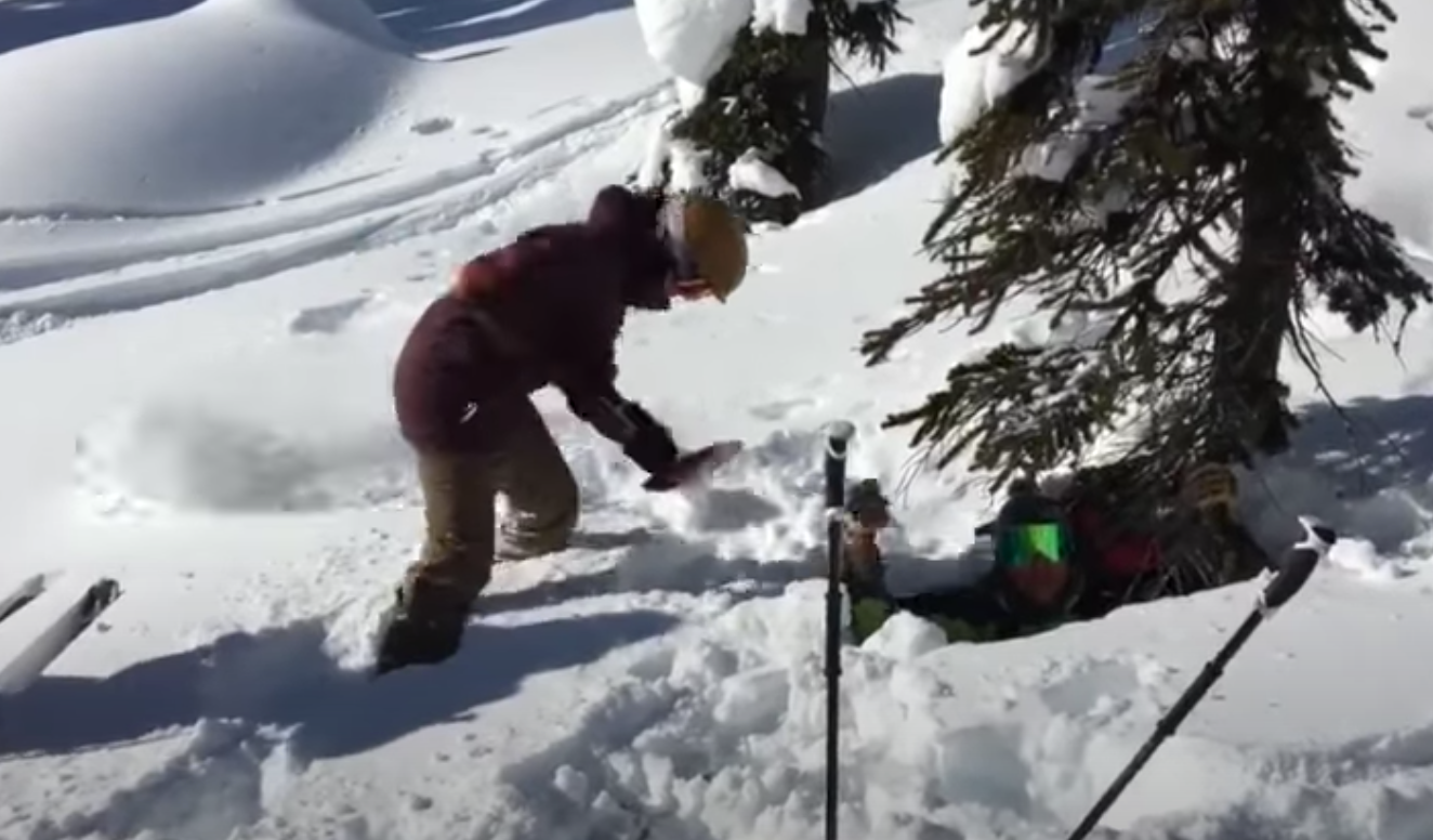 Tragically this weekend, a snowboarder died in a tree well inbounds at Jackson Hole Mountain Resort. While many of us might love skiing and riding in the trees (especially during dangerous avalanche conditions, when this can be a safer option), tree wells pose a real danger. A tree well is the area of deep, unconsolidated snow around the base of a tree that can “swallow” a rider if they come too close to the tree trunk. Snow immersion suffocation can occur if someone falls into a tree well, especially when they fall in headfirst and become immobilized. Pro skier and guide Chris Davenport demonstrates how to avoid falling in, and what to do if you or your partner do fall into one. If you fall in, stay calm. Grab on to any branches or the tree trunk and try to climb out. If you cannot get out alone, alert your partner that you are trapped, and have them shovel you out, moving snow downhill to excavate an exit.