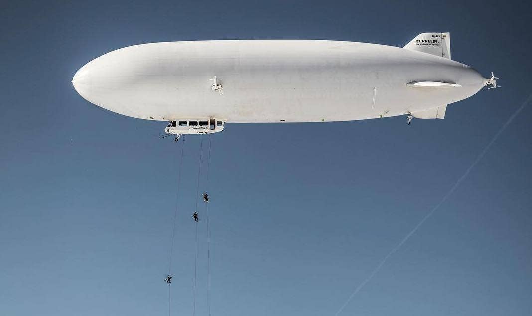 The Zeppelin then flew (or is it floated?) from Germany’s Bodensee into the mountains, where the skiers rappelled out of the cabin onto some pretty sick lines. Check out more highlights below.