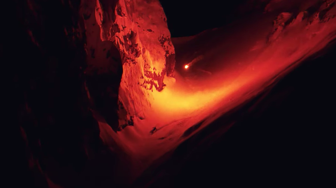 When big mountain skiers and snowboarders Jeremie Heitz, Nico Vuignier, Sam Anthamatten, Laurent DeMartin, Florian Bruchez, and Mathieu Schaer get together, you know it’s going to be wild. What we didn’t expect, however, was filmmaker and skier Nico Vuignier’s take on the matter. Imagine this: turn out all the lights, light up the sky with a huge fireball, and then shred hairy big mountain lines like there’s no tomorrow.