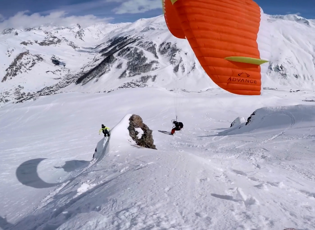 Last year, Leo Taillefer made himself pretty famous thanks to his Leo’s Line series of ridiculous ski antics all over the Alps. We haven’t seen much from the Frenchman this year, until this little guy popped up. Leo channels his inner James Bond, by attaching himself to a friend’s (Eliot Nochez) paraglider mid-line and getting creative. Oh yeah, and just like 007, the line ends with a 200-foot cliff.