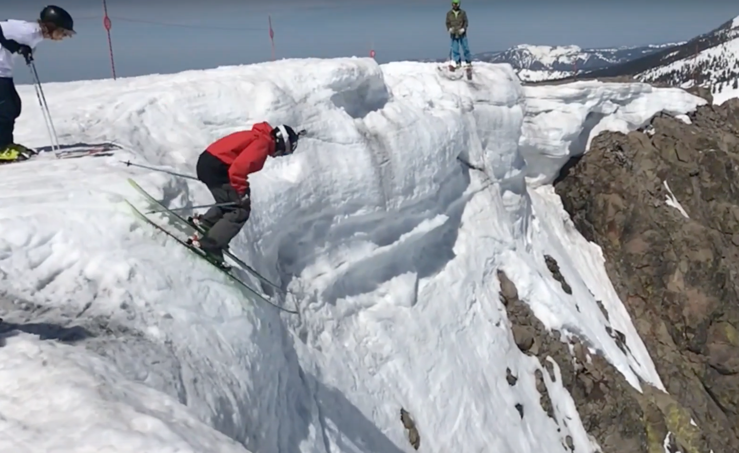 After ridiculous amounts of snowfall blanketed California this winter, skiers and riders finally got a chance to ski lines that have not been in condition for the past few years. Chimney, at Squaw has been in form like none other this year, and this past week it saw some action. Here's a clip from Wednesday of the Snowbrains crew absolutely sending it off the cornice into Chimney and some neighboring runs.