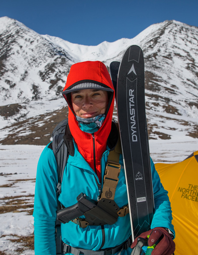 In 2010, on another expedition with The North Face, DesLauriers, along with Nelson and Figenshau, toured across the entire coastal plain. Glaciated peaks, the highest in the whole Brooks Range, rose straight up from the valley floor all around her. "One day while touring I felt like something was watching me," DesLauriers says. "I put my binoculars up to my eyes and I scanned to where I felt it was coming from and a saw a big snowy owl just standing there looking at me. That's the thing, when you are moving through this place slowly you really realize how alive the plain is. You will see arctic foxes and wolverines and so many tracks. It's not empty."